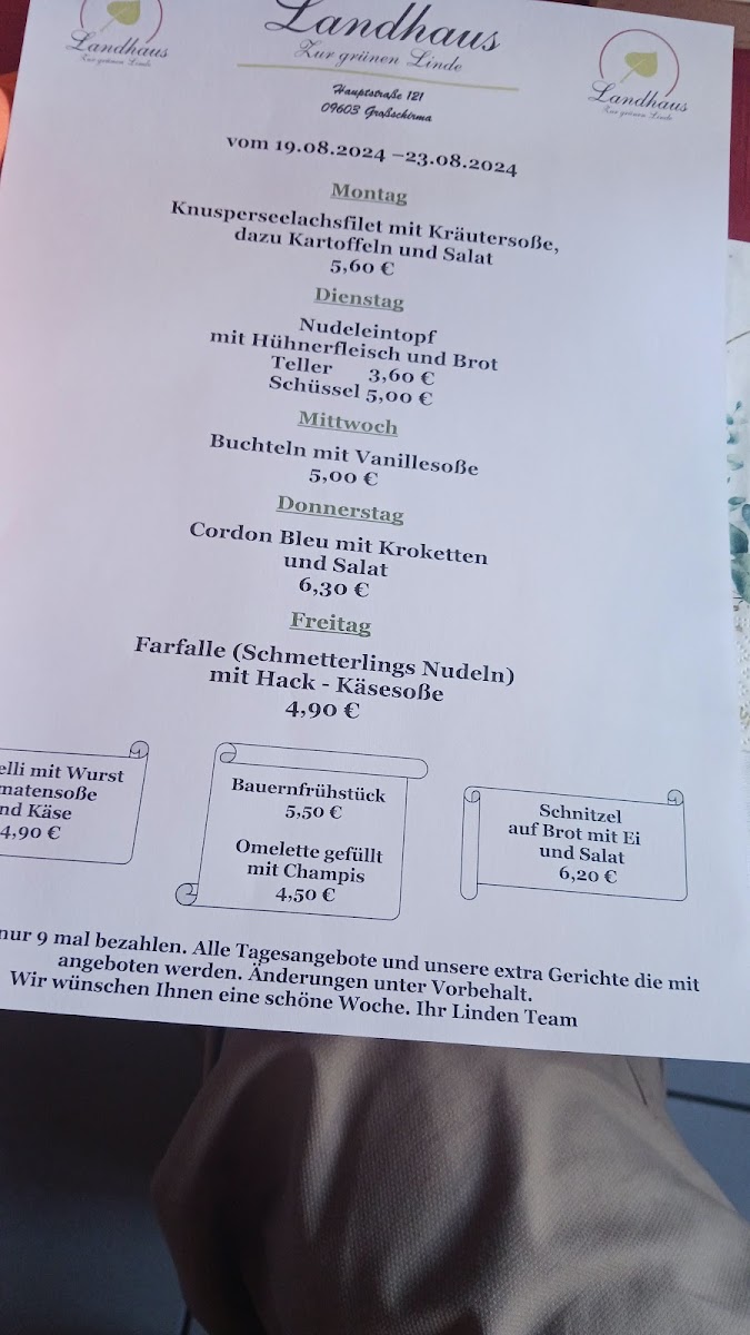 Welcome to Landhaus „Zur grünen Linde“, a charming retreat nestled in the heart of Saxony, at Hauptstraße 121, Großschirma. This delightful establishment seamlessly combines comfortable hotel accommodations with a standout dining experience.